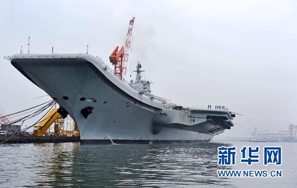 7月27日,国防部新闻发言人耿雁生在北京宣布,中国目前正利用一艘废旧的航空母舰平台进行改造,用于科研试验和训练。图为正在改造中的航母平台,改造完成后,将用于科研试验和训练。 新华社发【资料图】