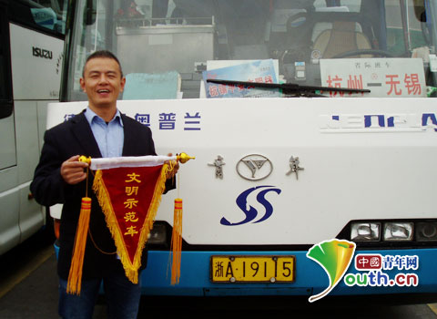 这是吴斌师傅获得车队嘉奖时留下的一张照片。杭州长运集团 供图
