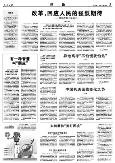 人民日报史上首推出新闻评论版 开篇聚焦改革