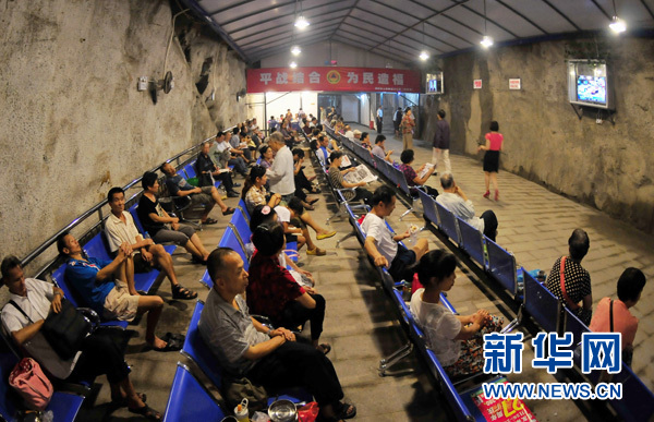 8月5日,在福州市一个避暑防空洞里,许多游客和市民在避暑纳凉。 当日, 福州市大部分县(市)最高气温达37℃以上,其中福州市区、内陆和沿海北部最高气温达38至40℃,局部超过40℃。福州市气象台9时发布高温红色预警信号,提醒相关部门做好应对工作,市民尽量避免在10时到17时之间出行并注意防暑降温。据福州市气象台介绍,这是福州市有气象预警信号以来发布的首个高温红色预警信号。新华社记者魏培全摄