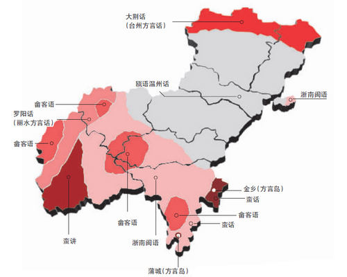 畲客话也叫畲语,是市内畲族使用的汉语方言,属于客家话系统。畲族的居住方式具有“小集中、大分散”的特点,畲客话分布在苍南、泰顺、文成、平阳等畲族居住区。