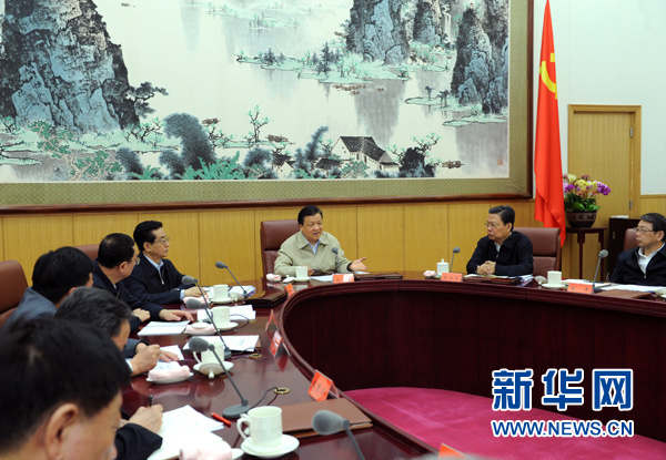 4月27日,中共中央政治局常委、中央党的群众路线教育实践活动领导小组组长刘云山在北京主持召开中央党的群众路线教育实践活动领导小组会议。新华社记者 饶爱民 摄