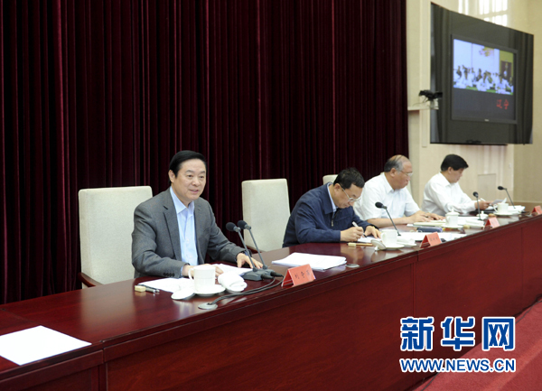 5月27日,中宣部、国家发改委召开节俭养德全民节约行动电视电话会议。中共中央政治局委员、中央书记处书记、中宣部部长刘奇葆出席会议并讲话。新华社记者 张铎 摄