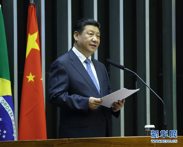 7月16日,国家主席习近平在巴西国会发表《弘扬传统友好共谱合作新篇》的演讲。 新华社记者兰红光摄