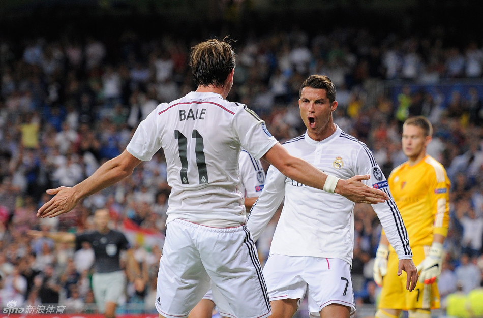 北京时间9月17日02:45(西班牙当地时间16日20:45),2014/15赛季欧洲足球冠军联赛B组一场焦点战在伯纳乌球场展开角逐,皇家马德里主场5比1大胜巴塞尔,纳乔传中造成对方乌龙,C-罗纳尔多和贝尔传射建功,哈梅斯-罗德里格斯和本泽马先后进球。