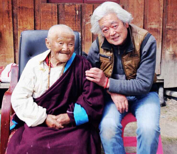 来自北京的游客王新开与波密县100岁藏族老人过年次仁/摄