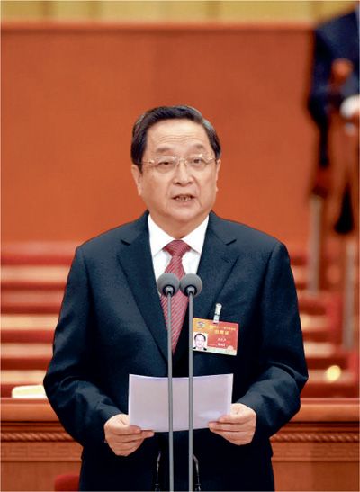3月13日,全国政协十二届三次会议在北京人民大会堂举行闭幕会。全国政协主席俞正声主持闭幕会并讲话。 本报记者 雷 声摄