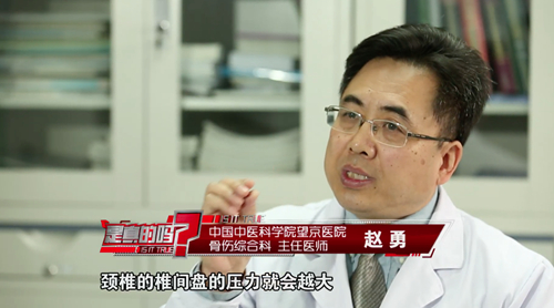 这些额外的压力会给颈椎甚至是人体健康造成什么伤害呢?中国中医科学院望京医院骨伤综合科主任医师赵勇告诉记者,越低头颈椎的椎间盘压力就会越大,颈椎一共七个节段,每个节段里边都有一个椎间盘,低头的时间越长、角度越大,椎间盘和颈椎椎体的受力就会越大,到了五六十岁的时候就会出现了,骨刺对神经、血管、脊髓都会产生刺激。