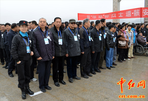 晋绥革命后代将烈士灵柩护送至墓地。(中红网江山摄)