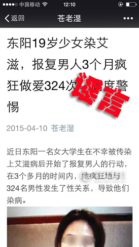 少女感染艾滋“睡”了324个男人? 东阳警方:谣言