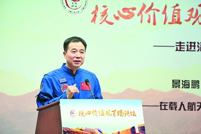 “当我的战友翟志刚用力拉了三次,舱门没有一丝反应,后来才觉得这就是天地的差别。但当时我们心中只有一个信念:绝对不能让全国人民失望!”语毕,现场爆发出一阵雷鸣般的掌声。4月28日,“核心价值观百场讲坛”第十九场活动现场,主讲嘉宾中国人民解放军航天员大队特级航天员景海鹏,声情并茂地作了题为“茫茫天宇写忠诚——在载人航天伟大实践中感悟核心价值观”的演讲,分享了他理解和坚守的核心价值观。