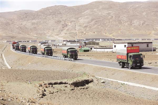 压题照片:图为转移受灾群众的车辆缓缓行进。记者次旺李洲唐斌丹增群培摄