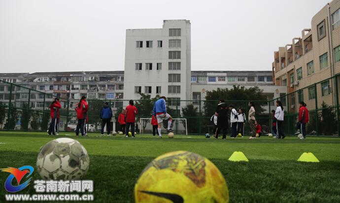 苍南新闻网1月12日消息:日前,投资30多万元的灵溪三中人工草坪的五人制笼式足球场交付使用。作为国家级足球特色学校的灵溪三中,为推动校园足球深入发展,本学期该校在七年级开设了《足球》课程。据悉,该校女子足球队是县青少年女子足球代表队,多年来承接县市比赛任务,成绩斐然。 (张耀辉/摄)