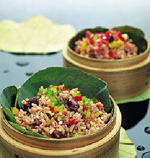 材料:薏仁、麦片、红豆各0.3杯,黑糯米0.1杯,糙米1杯,白米0.8杯