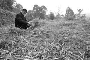“看看这些,都是被野猪刨掉的。”在自己种植水稻的梯田里,吴德西颇为伤感。田地里,枯死的稻秆成片堆着,有的还未成熟的稻穗趴在地上,这些都是被野猪破坏的。