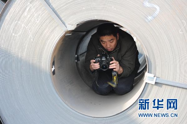 资料图:新华社记者杨世尧在唐山港采访。 新华社发