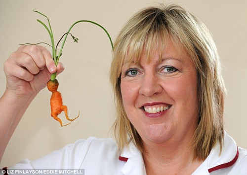 据外媒30日报道,英国针灸医生伊冯?达内尔种出了一颗奇特的胡萝卜。此胡萝卜虽然身形娇小,却头脚俱全,甚至五官分明,看上去仿佛Q版外星人。唯一美中不足的是没有胳膊。