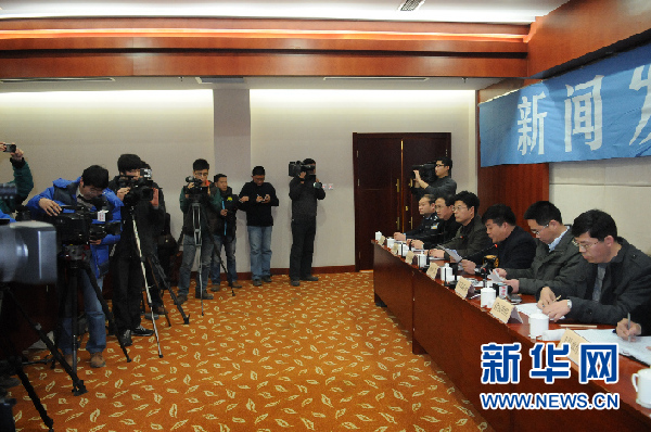 12月14日,丰县人民政府召开校车侧翻事故以来的第三次新闻发布会,丰县公安部门表示,根据当事司机洪旭最新的交代,事故发生时车上学生有47人,而公安部门能够确认的人数为41人,此前公布的这一数字为29人。这是新闻发布会现场。 新华社发(沈鹏摄)