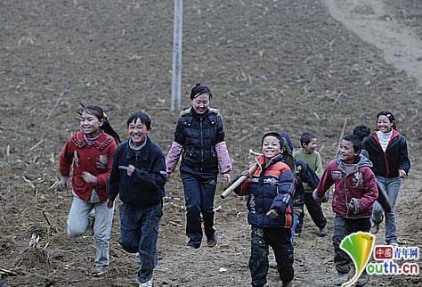 第十六届“中国青年五四奖章”获得者孙影(中)在农忙时节,和孩子们一起下地干活。 孙影 供图