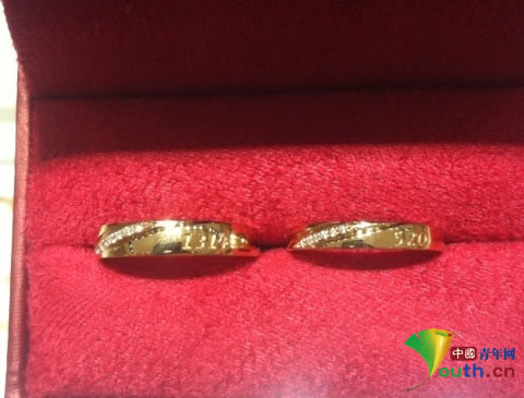 刻着“1314”和“520”的对戒。吴斌家人 供图