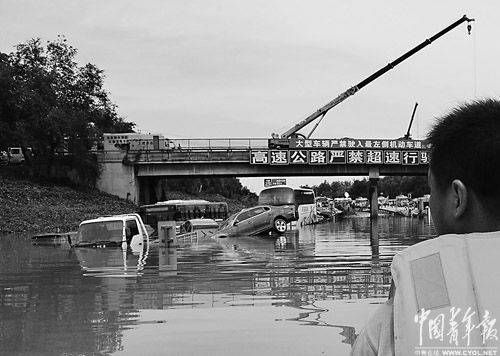 这时,高速路上的水开始多起来,他们发现有水正顺着高速两边的护坡向里灌。水冲下来的速度非常快,积水越涨越高。出京方向的道路开始有积水了,人们从车里陆续跑出来。
