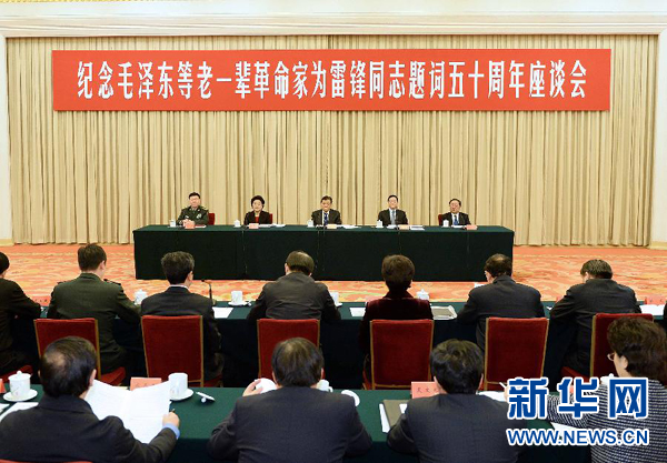 3月1日,中央精神文明建设指导委员会在北京召开纪念毛泽东等老一辈革命家为雷锋同志题词五十周年座谈会。中共中央政治局常委、中央文明委主任刘云山出席会议并讲话。新华社记者 李涛 摄