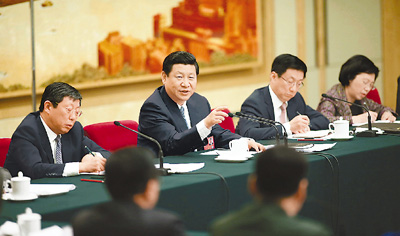 3月5日,中共中央总书记、中共中央军委主席习近平参加十二届全国人大一次会议上海代表团的审议。