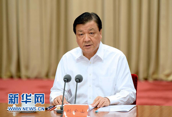 6月18日,中共中央政治局常委、中央党的群众路线教育实践活动领导小组组长刘云山在北京出席党的群众路线教育实践活动工作会议第二次全体会议并讲话。新华社记者马占成摄