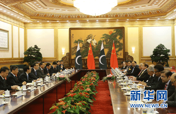 新华网北京7月5日电(记者徐松)国务院总理李克强5日上午在人民大会堂同巴基斯坦总理谢里夫举行会谈。