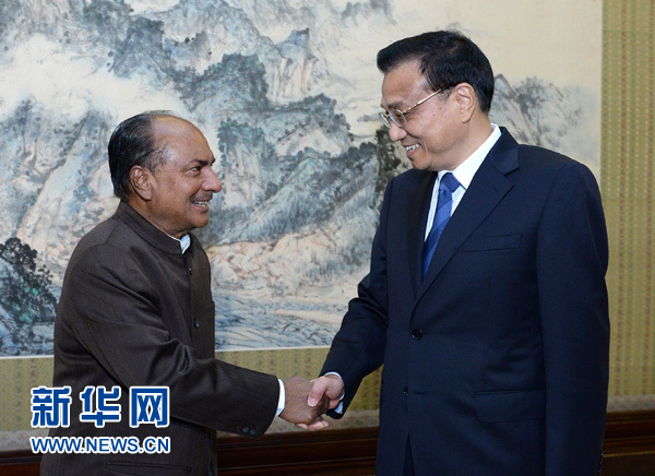 李克强会见印度国防部长安东尼