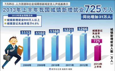 数据显示,1—6月,城镇新增就业人数725万人,同比多增31万人。二季度末城镇登记失业率4.1%,与一季度和去年同期持平。