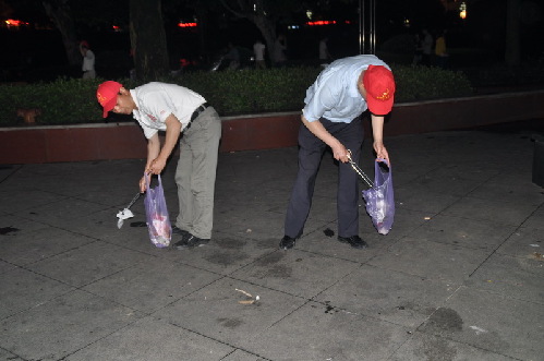 每周三在江南、周五在江北,定时定点到马路上捡垃圾。一开始,赵学锋和其他义工都感觉不适应,“觉得不好意思,路上人来人往,总会碰到认识的人”。于是,他们有的把帽子压得很低,有的低着头只顾捡垃圾,可时间长了,他们发现有效果。