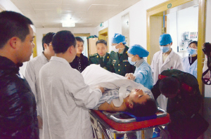 图为叶凯靖从台州医院重症监护室推出转至浙二医院。 田 伟摄