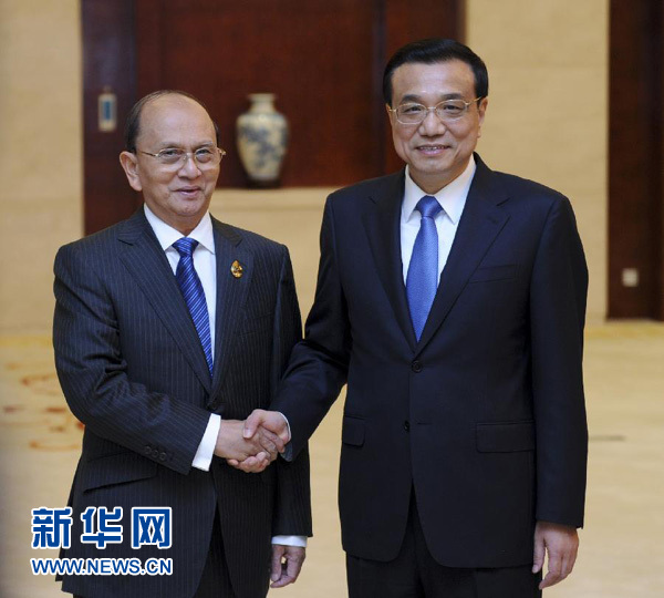 9月2日,国务院总理李克强在南宁会见前来出席第十届中国-东盟博览会暨中国-东盟商务与投资峰会的缅甸总统吴登盛。 新华社记者 张铎摄