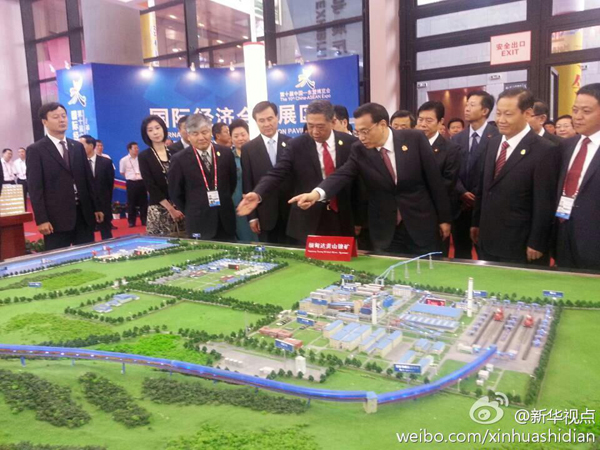 新华网北京9月3日电 据新华社新华视点微博报道,3日上午,李克强总理在参观东盟博览会展馆时,专程来到中国有色矿业集团展位,详细了解了该集团缅甸达贡山镍矿项目模型,称赞该项目的设计充分考虑到了当地人民的生活习惯和风俗。
