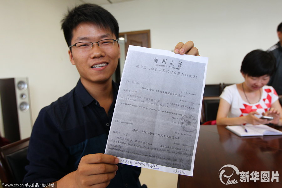 2013年09月25日,记者从郑州大学官方网站获悉,郑州大学校保卫处5名保安队员考取国内知名大学研究生。此消息一出,引发网友关注和热议,而已接到录取通知书的保安队员,仍坚守岗位,直到开学在即,才结束手中的工作不舍离去。