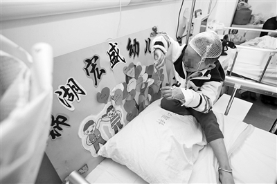 “这两天突然变得很暴躁,护士过来打针或者打完针要拔针,他就挣扎。”东东的伯母丽萍说,孩子夜里几乎都没睡着,醒来就吵着要爸爸妈妈抱。一旁的小姨一边冲着奶粉一边说:“他饭也不吃,奶粉都是喝两口就不喝了。”四天里,东东几乎没吃过什么东西。