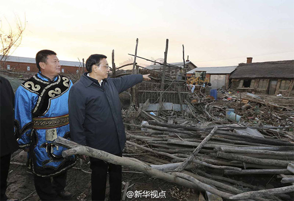 新华网北京11月4日电 据新华社“新华视点”微博报道,洪水已退,但八岔赫哲族村道路依然湿滑。李克强踩着泥泞小路,一脚深一脚浅来到老乡家后院,查看村里水毁房屋受损情况。看到许多土坯房泡水后墙体溃烂,李克强关心地询问新房建设规划。听了村里重建新房计划后,他说,政府会帮助大家建起赫哲族新家园。