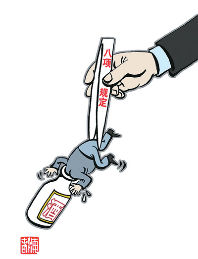 在“贺卡禁令”发布前两天,10月29日,中共中央政治局审议并同意印发《党政机关厉行节约反对浪费条例》,以行政法规的形式,就机关经费管理、国内差旅、出国、公务接待、公务用车、办公用房等进行了详尽、细化的规定。这也是“八项规定”发布近一年来,中央针对“四风”问题推出的系列举措中的最新动作。
