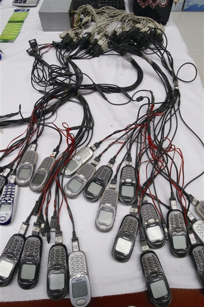 每天起床后,他们各自分工,小王检查群发设备,给300多部手机换上新的手机卡。小肖坐在电脑前,在QQ群里寻找需要发送短信的客户。