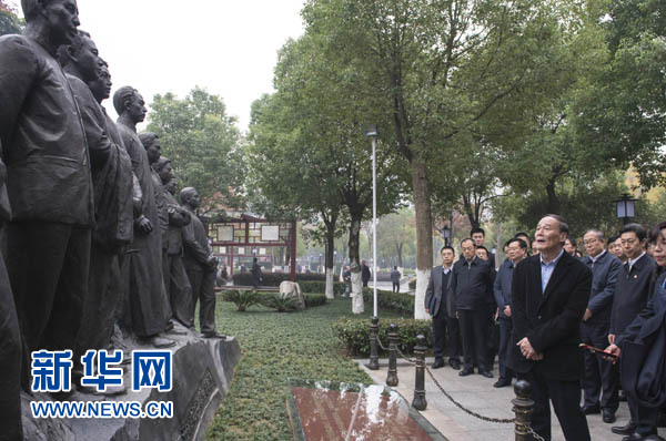 中共中央政治局常委、中央纪委书记王岐山22日下午在湖北省武汉市调研期间,专程来到中央监察委员会旧址,瞻仰第一届中央监委10名成员雕像并敬献花篮,深切缅怀革命先辈。