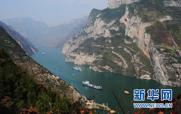 船只从长江巫山段驶向下游地区(11月17日摄)新华社记者李健摄