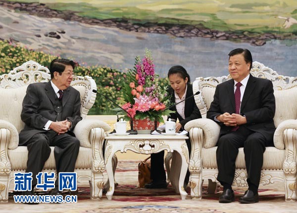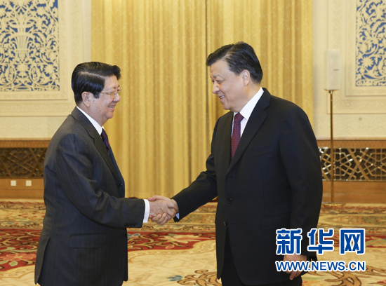 12月18日,中共中央政治局常委、中央书记处书记刘云山在北京人民大会堂会见由索安副首相率领的柬埔寨人民党代表团。 新华社记者丁林摄