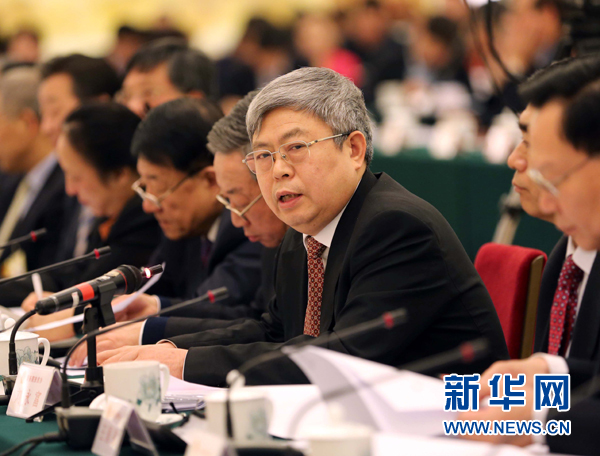 12月27日,十二届全国人大常委会第六次会议在北京人民大会堂举行联组会议,结合审议国务院关于农村扶贫开发工作情况的报告进行专题询问。这是国务院扶贫办主任刘永富在回答委员的询问。 新华社记者 刘卫兵 摄