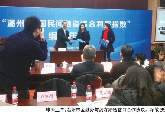 温州网讯 “路透社某月某日电,昨天发布的温州民间融资综合利率指数(简称‘温州指数’)为……”如果你看到这样的新闻,不要以为是恶搞,它是真的。昨天上午,温州市金融办与汤森路透签订合作协议,后者将利用其全球平台,从今天开始同步发布中英文版的温州指数。