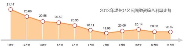 2013年1月份,温州民间利率的综合指数为21.14%;2月份为20.80%;3月份为20.55%……11月份为20.02%。运行一年的温州指数,直观地反映出温州民间资金价格的变化:整体利率在平稳下行。
