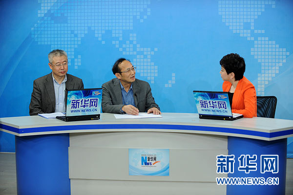 “核雾染”这个新词近期频频出现在网上。“核雾染”之说靠不靠谱?雾霾会对公众健康造成什么影响?北京大学公共卫生学院教授潘小川、环境保护部核与辐射安全中心副总工程师陈晓秋走进新华网直播间,为网友讲解如何正确看待雾霾与健康。图为访谈现场。新华网 陈竞超 摄