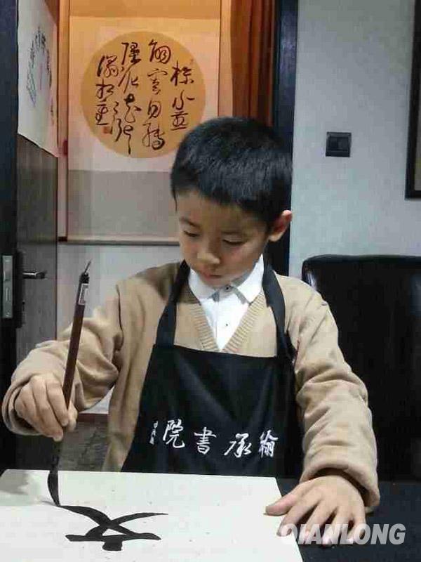 资料图片:张圣博在上书法课(千龙网发)。
