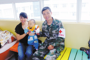 术后三天 骨科医副主任朱跃良和他恢复良好的小病人。