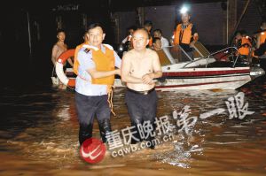 今年59岁的李江渝是渝北区公安分局调研员,再干不到一年就要退休了。前天上午,他接报渝北多地发生洪灾后主动请缨上前线,理由是“我常锻炼,会游泳,有救援经验”。当天下午4时左右,他和几个同事赶到被洪水围困的渝北区统景镇。
